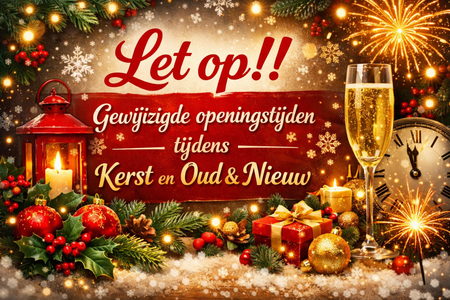 Onze openingstijden tijdens de dagen na Kerst en Oud & Nieuw zijn gewijzigd: